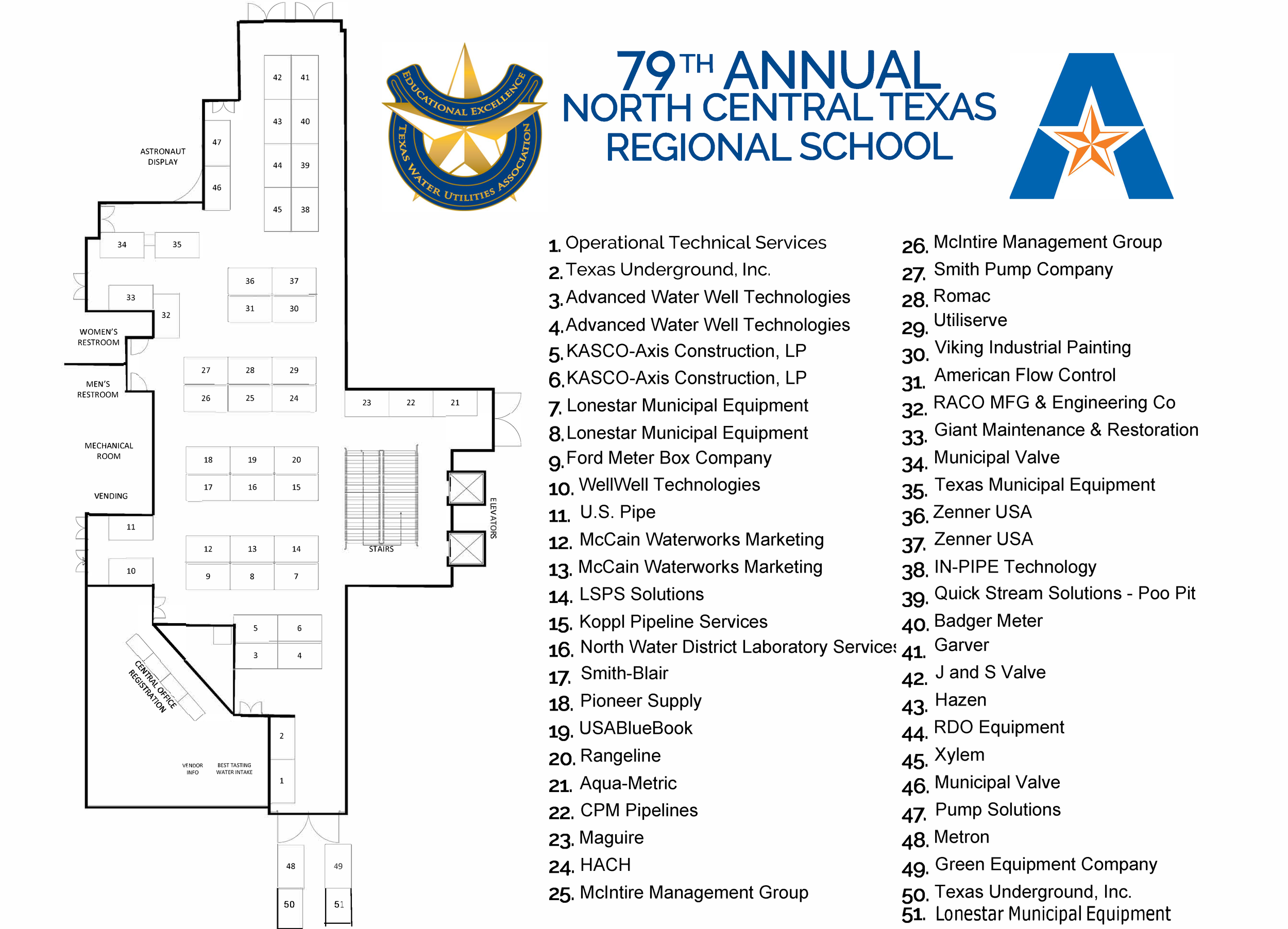 Did you know? Every school we have 50 of the water and wastewater industries’ top companies set up in an exhibit hall outside of the registration booth.